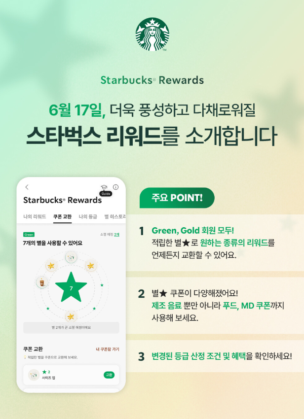 2025년 6월 17일부터 적용되는 새로운 스타벅스☕ 리워드 혜택 정리