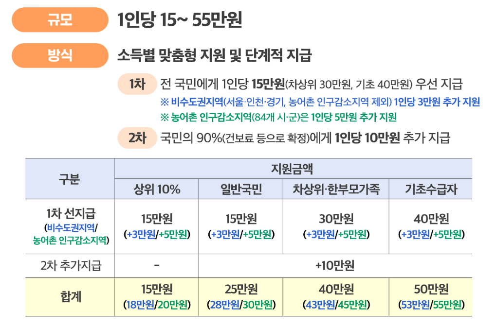 2025년 정부는 물가 안정과 내수 진작을 위해 민생회복 소비쿠폰을 도입했습니다. 제로페이나 지역사랑상품권 형식으로 제공되며, 전통시장·동네상권·소상공인 업종 중심으로 사용이 제한됩니다.